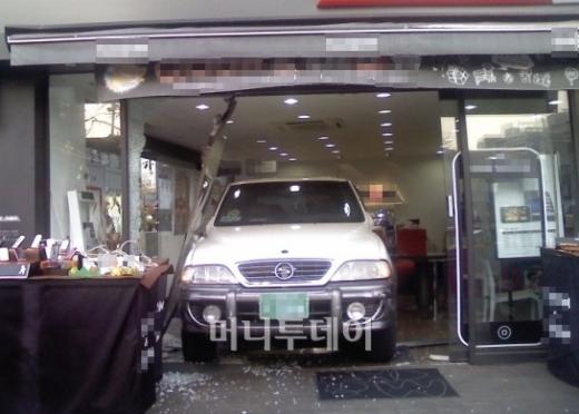 이동통신사 대리점 서비스에 불만을 품은 한 고객이 자신의 차량으로 매장을 들이받는