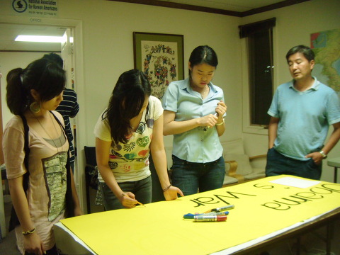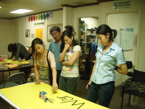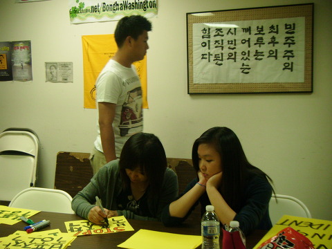 백악관 가기전날 피켓 제작 모습