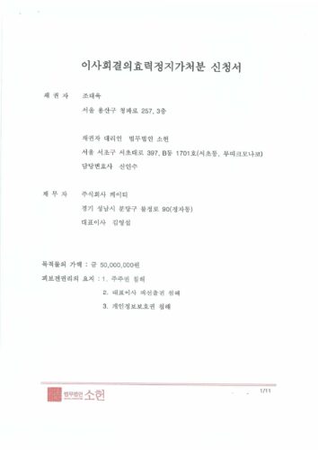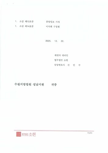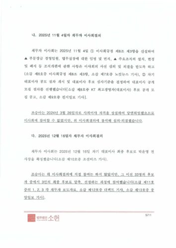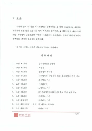 KT노동인권센터 KT이사회결의효력정지가처분 심문기일[1월20일(화)10:30] 통지서 및 가처분신청서[전문] 작성자: 인권센터 | 조회: 385회 | 작성: 2025년 12월 26일 오후 2:34
