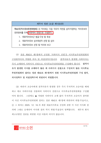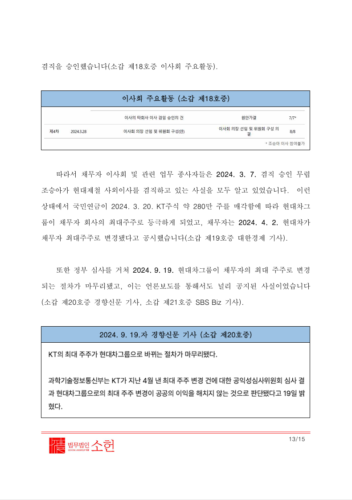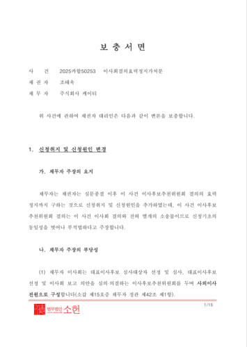 KT노동인권센터 KT이사회결의효력정지가처분 사건 신청인(채권자)측 보충서면 2월3일 재판부에 제출(쌍방 서면 첨부) 작성자: 인권센터 | 조회: 377회 | 작성: 2026년 2월 3일 오후 3:43
