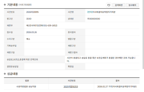 제1민사부에 배당되었다.(사건번호2026라20095)