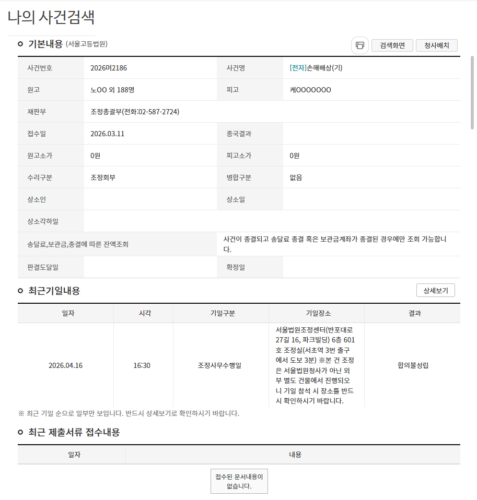 작성자: 인권센터 | 조회: 17회 | 작성: 2026년 4월 18일 오전 12:232024년10월 구조조정시 조합원총회 없이 직권조인한 어용노조 상대 조합원 189명 집단손배청구 1심에서 승소한 사건의 항소심 재판부(서울고등법원 제1-3민사부)가 이 사건을 조정회부 결정하였고, 4월16일 오후 16:30 서울법원조정센터 601호에서 조정이 진행되었는데, 예상한대로 1심의 규약변경무효 및 손배인정 판결에 대한 원고와 피고 양측의 입장이 너무 확연하게 달랐다.
