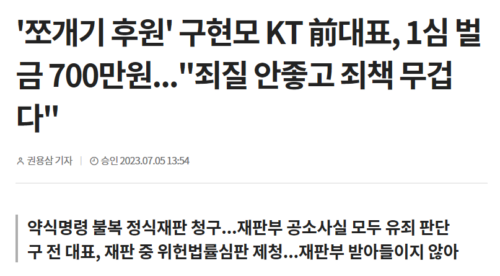 ▲ 구현모 등 정치자금법 위반 1심판결 기사(2023.7.5.굿모닝경제)_죄질 안좋고 죄책 무겁다