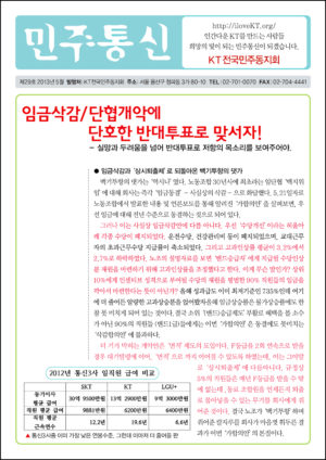 [논평] 이석채회장은 백배 사죄하고 당장 사퇴하라!!! 고용노동부는 kt에 대한 특별근로감독 결과를 보도자료를 통해 5월21일 공식 발표하였다. 118개 지사를 포함한 172개 사업장에 대한 조사를 2012.1.30부터 2.29까지 벌였으며, 조사 결과 대표이사 이석채에 대해 근로기준법 등을 위반한 혐의로 3월19일 입건하였고 5월10일자 기소의견으로 검찰에 송치하였다고 한다. 우리는 그 동안 kt에서 무법천지로 발생되고 있는 법위반 사항들에 대해 줄기차게 관련 기관에 […]